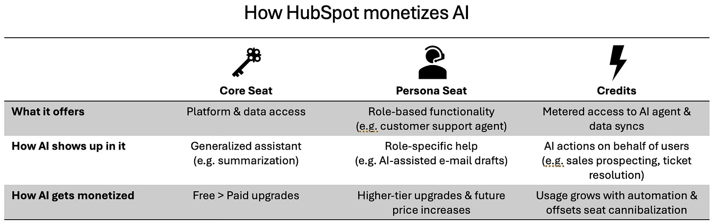 Both made it out of the shift and became role models for others. AI forces a similar question – how, and how quickly, to adapt – but the stakes are bigger. It isn’t just a shift from one type of seat to another; it’s about who does the work and how you capture that value. HubSpot is one of the clearest examples of a managed transition in progress.